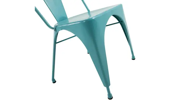 Silla en acero acabado con pintura electroéstatica. Apilable. Con revestimiento para uso de interior y exterior