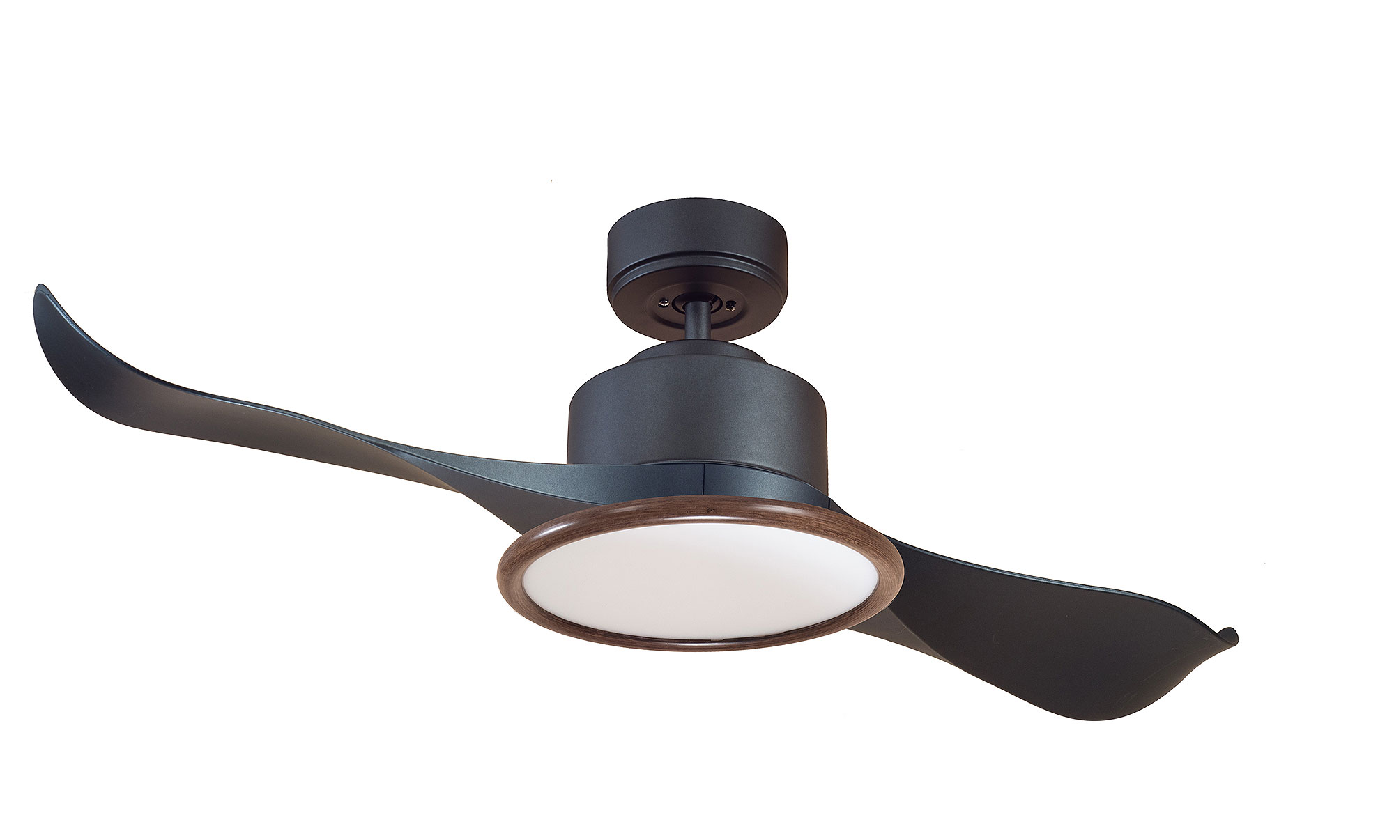 Motor DC con mando, tija de 12 y 25 Cm, 3 Palas diametro 106 Cm y Kit de Luz Typo Plato 1900 Lms 4500K