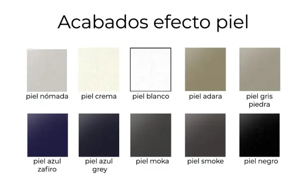 Tipo 2: estructura en mate / frentes en brillo o efecto piel / patas en mate / midline en mate.