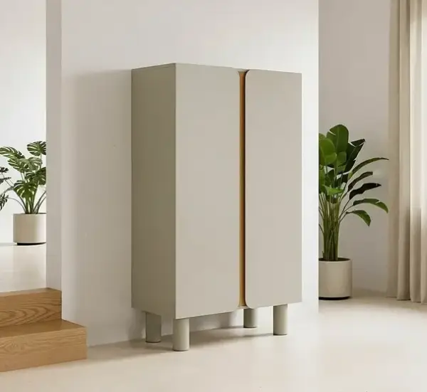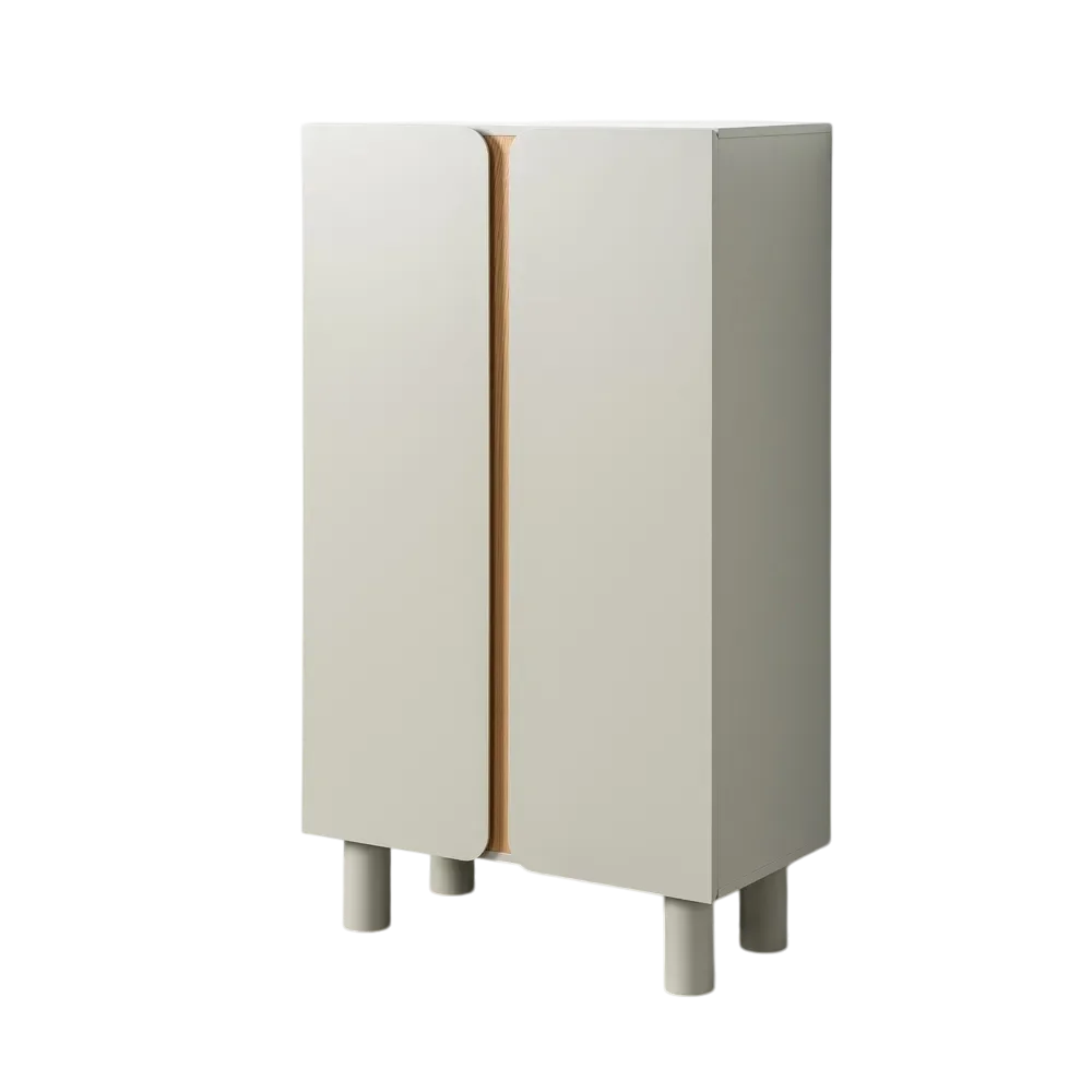 El diseño de las puertas es suave y redondeado, lo que añade un aire contemporáneo, mientras que la línea central en la puerta ofrece un sutil toque de estilo. Este armario es perfecto tanto para un ambiente moderno como para uno más cálido y acogedor, convirtiéndolo en una opción versátil para cualquier hogar.