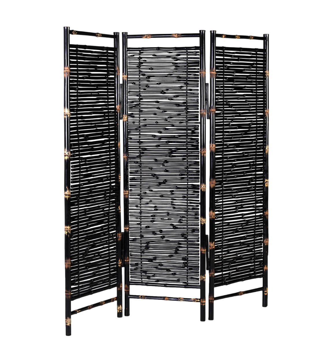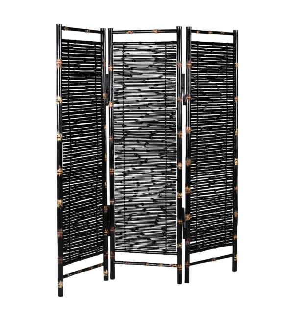 Este biombo está elaborado artesanalmente en bambú, utilizando productos naturales que le confieren un carácter único y auténtico. Presenta una estructura plegable formada por varios paneles, lo que permite adaptarlo fácilmente a distintos espacios y necesidades. El bambú, trabajado en un acabado oscuro, aporta un estilo elegante y exótico, con una textura natural que realza su aspecto artesanal. Los detalles de unión entre los paneles refuerzan su solidez y aportan un sutil contraste decorativo. No requiere montaje, por lo que está listo para usar desde el primer momento. Con unas medidas de 170 cm de ancho, 4 cm de fondo y 150 cm de alto, este biombo es ideal para separar ambientes, aportar privacidad o añadir un elemento decorativo de inspiración natural y sofisticada a cualquier estancia.