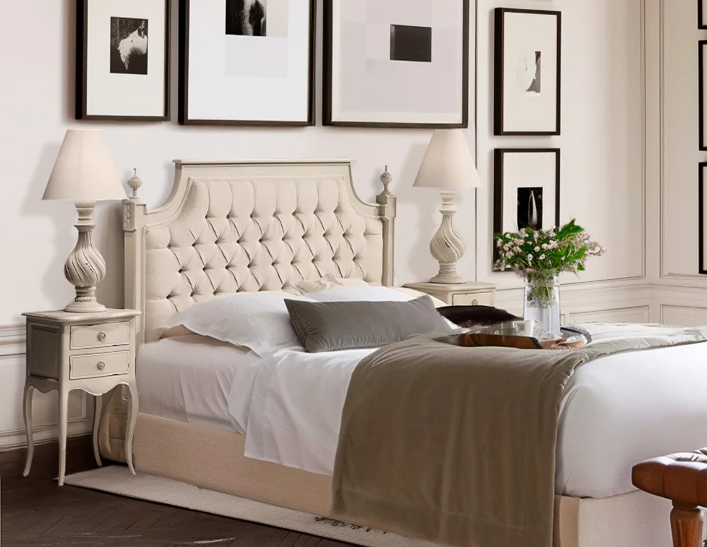 Descubre el encanto atemporal de nuestro Cabecero La Bresse, una joya de diseño artesanal que redefine la elegancia en tu dormitorio. Fabricado en madera de mindi y tapizado con suave tela de lino en color crudo, este cabecero fusiona lo clásico con lo contemporáneo. El acabado blanco envejecido aporta un toque de sofisticación, convirtiéndolo en el centro de atención de tu espacio. Cada detalle ha sido cuidadosamente elaborado, reflejando la artesanía excepcional que solo encontrarás en piezas únicas.