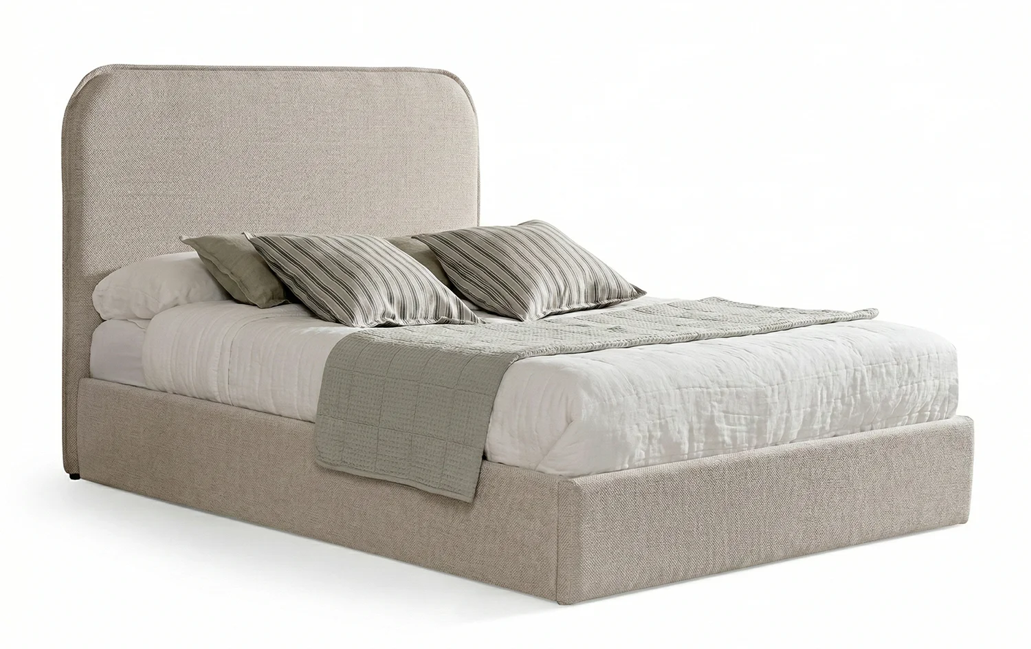 El canapé abatible con sistema de elevación hidráulico permite una apertura frontal suave y cómoda, facilitando el acceso al interior. Dispone de un fondo interior de 15 cm, ideal para almacenar ropa de cama, mantas o textiles de temporada. La tapa tapizada, oculta en el interior, mantiene una estética uniforme y minimalista.