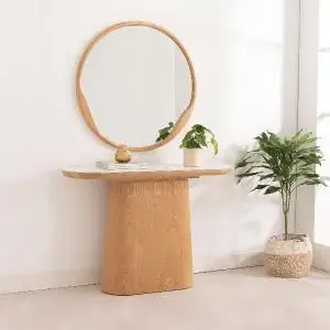 La consola de 120 x 80 x 40 cm destaca por su equilibrio entre diseño elegante, practicidad y materiales de primera calidad, lo que la convierte en una pieza adaptable para recibidores, salones o pasillos. Su superficie de porcelánico blanco aporta un toque de sofisticación, además de ser resistente y fácil de mantener, mientras que su estructura de roble ofrece calidez, solidez y un aspecto natural que enriquece cualquier ambiente. Perfecta para exhibir adornos, lámparas, fotografías o piezas decorativas, brinda funcionalidad sin perder estilo. Gracias a su diseño compacto y armonioso, se integra con facilidad en diferentes tipos de decoración, desde la moderna hasta la clásica contemporánea. La fusión entre porcelánico y roble garantiza durabilidad y una belleza atemporal.