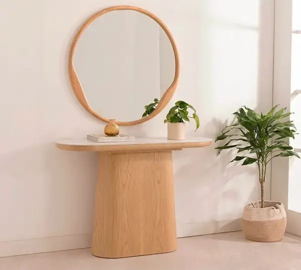 Consola curva roble y porcelánico Cendra