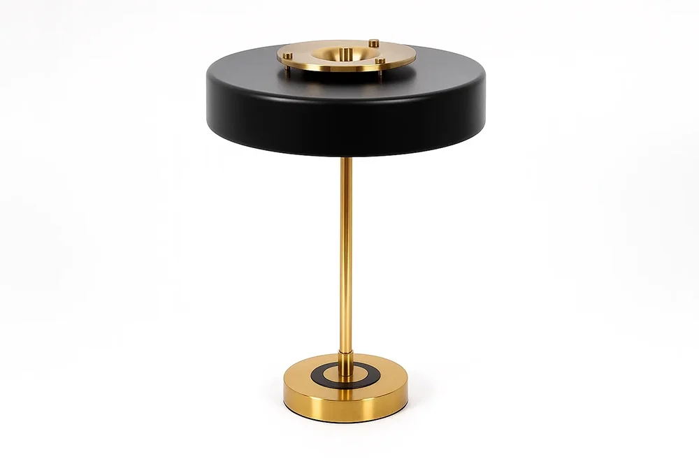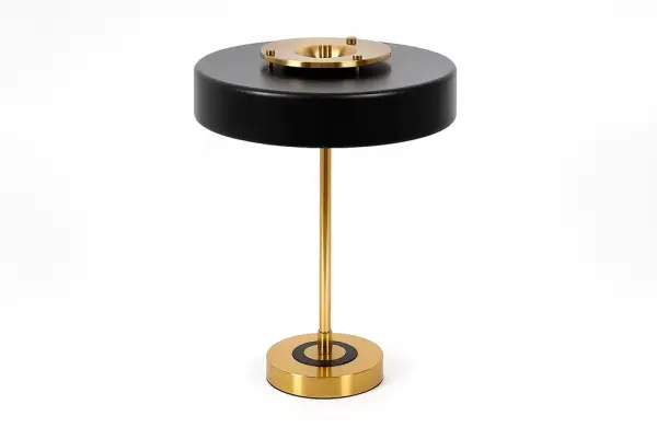 La lámpara de escritorio Fawcett combina diseño contemporáneo y funcionalidad. Con pantalla en negro mate y estructura metálica dorada, aporta elegancia y una iluminación cálida. Funciona con 3 bombillas E14, 230V, 40W (no incluidas).