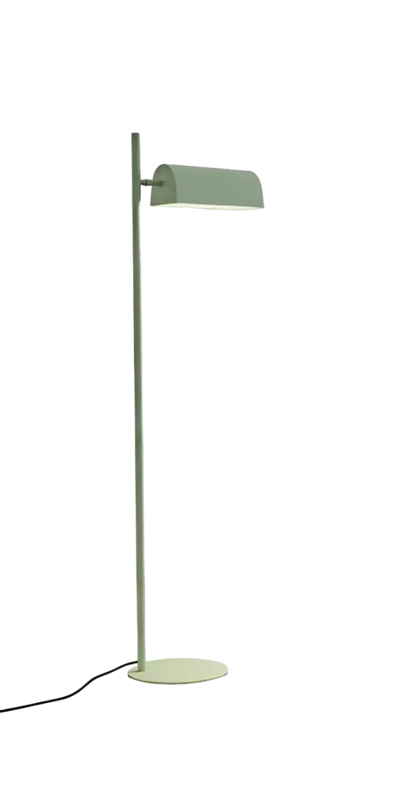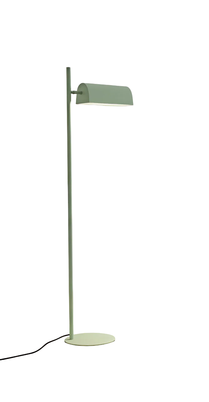 La lámpara de pie en acero color verde es una pieza de iluminación moderna y decorativa que aporta frescura y personalidad a cualquier estancia. Su diseño estilizado y minimalista, combinado con una pantalla que proyecta luz difusa, crea una iluminación suave y acogedora ideal para salones, dormitorios o zonas de lectura.
