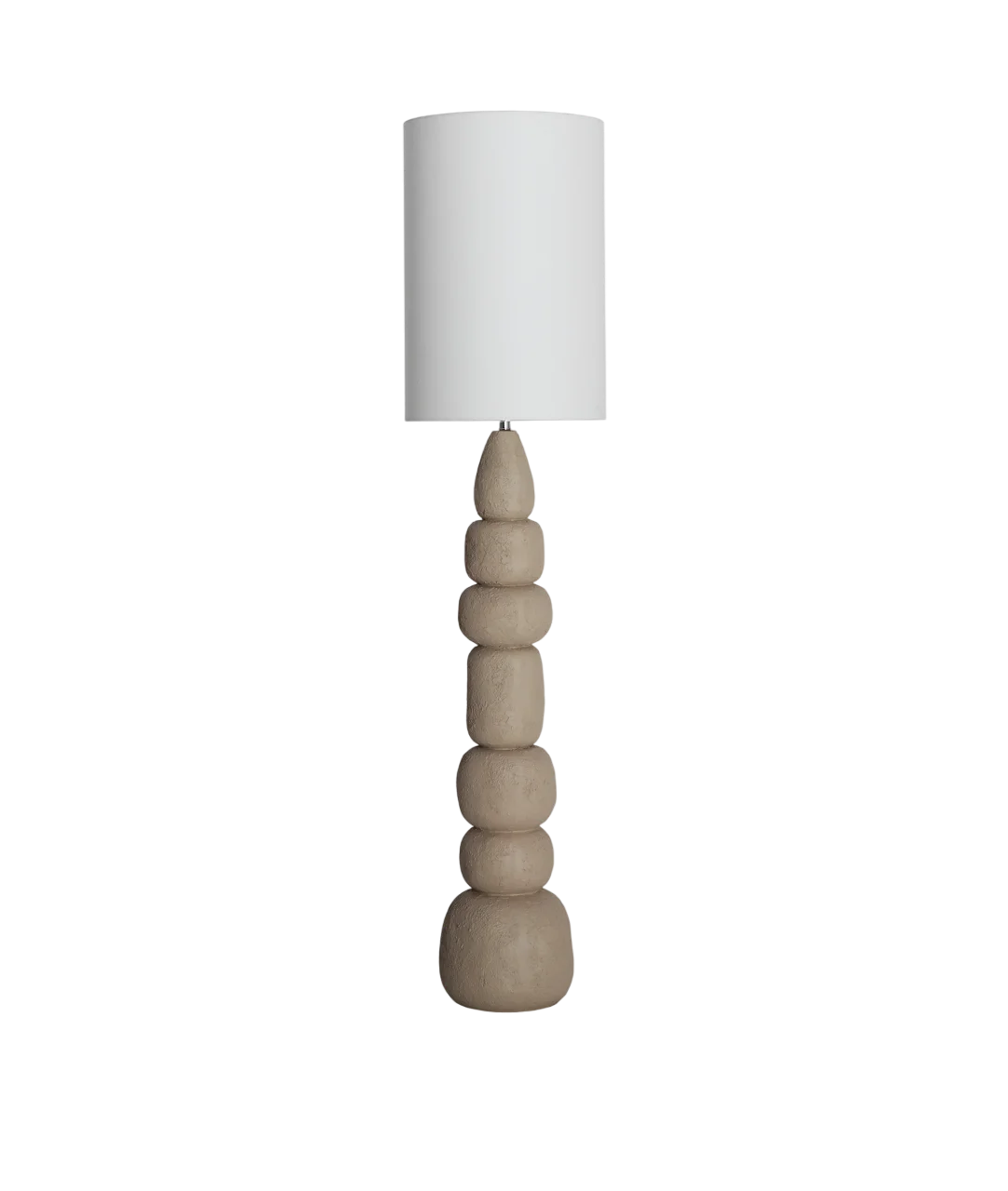 El cuerpo de la lámpara está fabricado en resina de un suave tono beige, que aporta una sensación de calidez y naturalidad. Su silueta escultórica se caracteriza por una composición de volúmenes redondeados que van ascendiendo en un ritmo vertical, creando un juego visual que es tanto dinámico como equilibrado. Este diseño envolvente no solo actúa como soporte, sino también como un atractivo estético que puede ser el elemento central de la decoración de cualquier habitación.