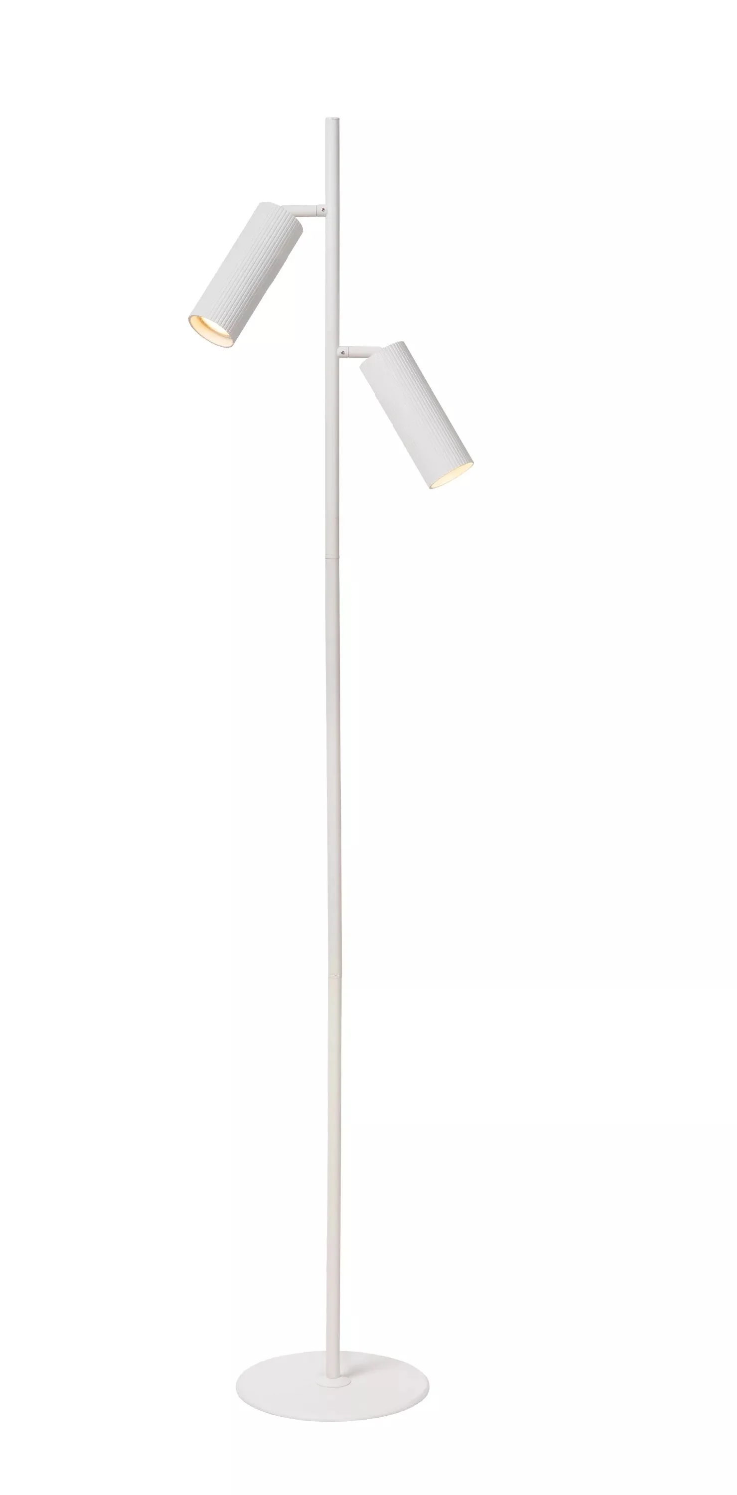 Fabricada en aluminio de alta calidad, presenta un diseño moderno con dos pantallas cilíndricas y estilizadas, preparadas para alojar bombillas LED. Ambos focos se pueden girar e inclinar de forma independiente, permitiendo crear diferentes juegos de luz y adaptar la iluminación a cada necesidad.