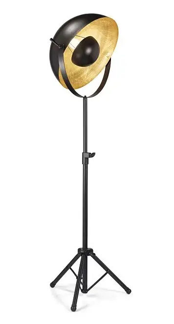 Su difusor orientable, decorado en el interior con hoja de oro, aporta una luz cálida y envolvente, creando un contraste elegante entre el exterior negro y el interior dorado. Ideal como lámpara auxiliar para salón, rincón de lectura, dormitorio o proyectos de interiorismo que buscan un punto focal con personalidad.