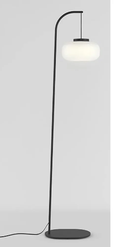 La lámpara de pie de inspiración japonesa destaca por su diseño elegante y minimalista. Su estructura está basada en un disco que alberga la fuente de luz (E27), brindando una iluminación cálida y acogedora.