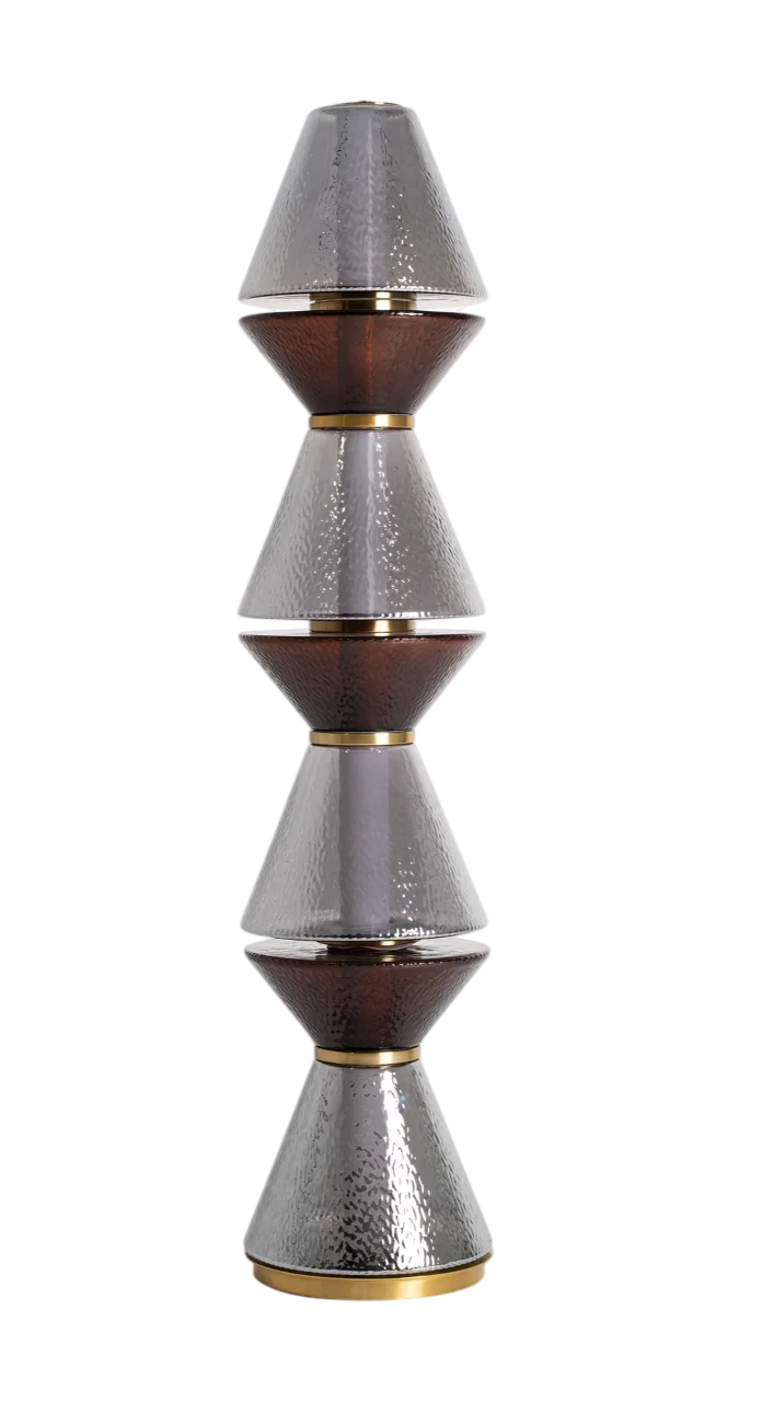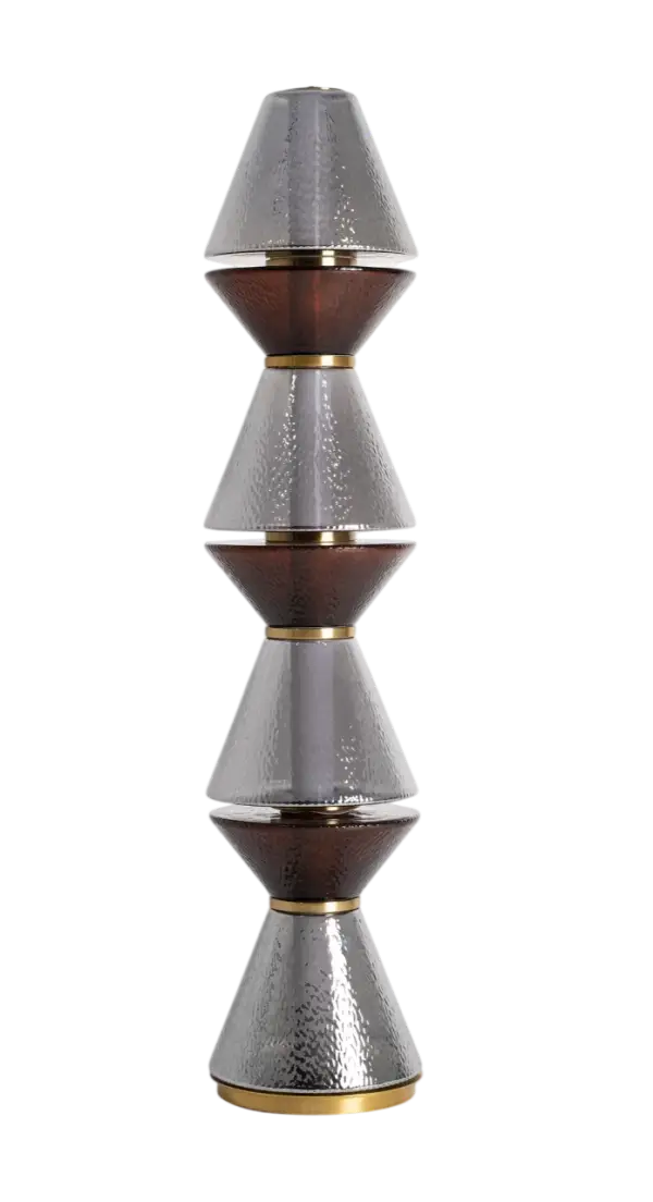 La lámpara de pie Narel es una pieza de iluminación escultórica que combina volúmenes geométricos de cristal en color gris con detalles en hierro acabado dorado, aportando elegancia y personalidad al espacio. Su diseño vertical y sofisticado la convierte en un elemento decorativo protagonista, ideal para interiores contemporáneos, modernos o de estilo art déco. Con unas dimensiones de 29 cm de ancho, 29 cm de fondo y 140 cm de alto, ofrece una iluminación ambiental suave y envolvente, perfecta para salones, dormitorios o recibidores que buscan un toque exclusivo. Una lámpara de pie distintiva que fusiona arte, diseño y funcionalidad en una sola pieza decorativa.