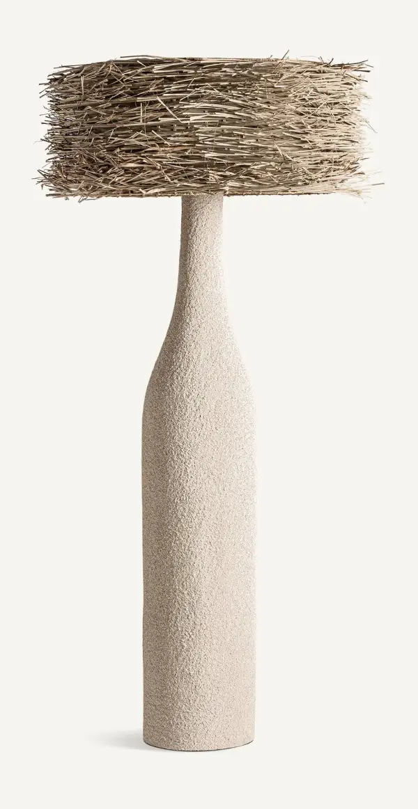 La lámpara de pie Nyland destaca por su diseño orgánico y natural, elaborada en resina de acabado crema rugoso combinada con una pantalla de hierba marina en color marrón. Su estética artesanal y texturizada aporta calidez y personalidad, convirtiéndola en una pieza decorativa ideal para interiores de estilo mediterráneo, rústico contemporáneo o boho. Con unas dimensiones de 83 cm de ancho, 83 cm de fondo y 147 cm de alto, ofrece una iluminación ambiental suave y acogedora, perfecta para salones, dormitorios o rincones relajados. Una lámpara de pie que fusiona materiales naturales y diseño escultórico para crear ambientes equilibrados y con carácter.