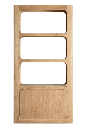 Fabricada en madera de roble en un cálido tono marrón claro, la Saulge destaca por su bello acabado natural, que resalta la textura y las vetas de la madera, aportando un toque de calidez y confort a cualquier habitación. Su estructura abierta, compuesta por estantes amplios y bien distribuidos, permite exhibir libros, adornos y plantas, creando un ambiente acogedor donde la organización se mezcla con la estética.