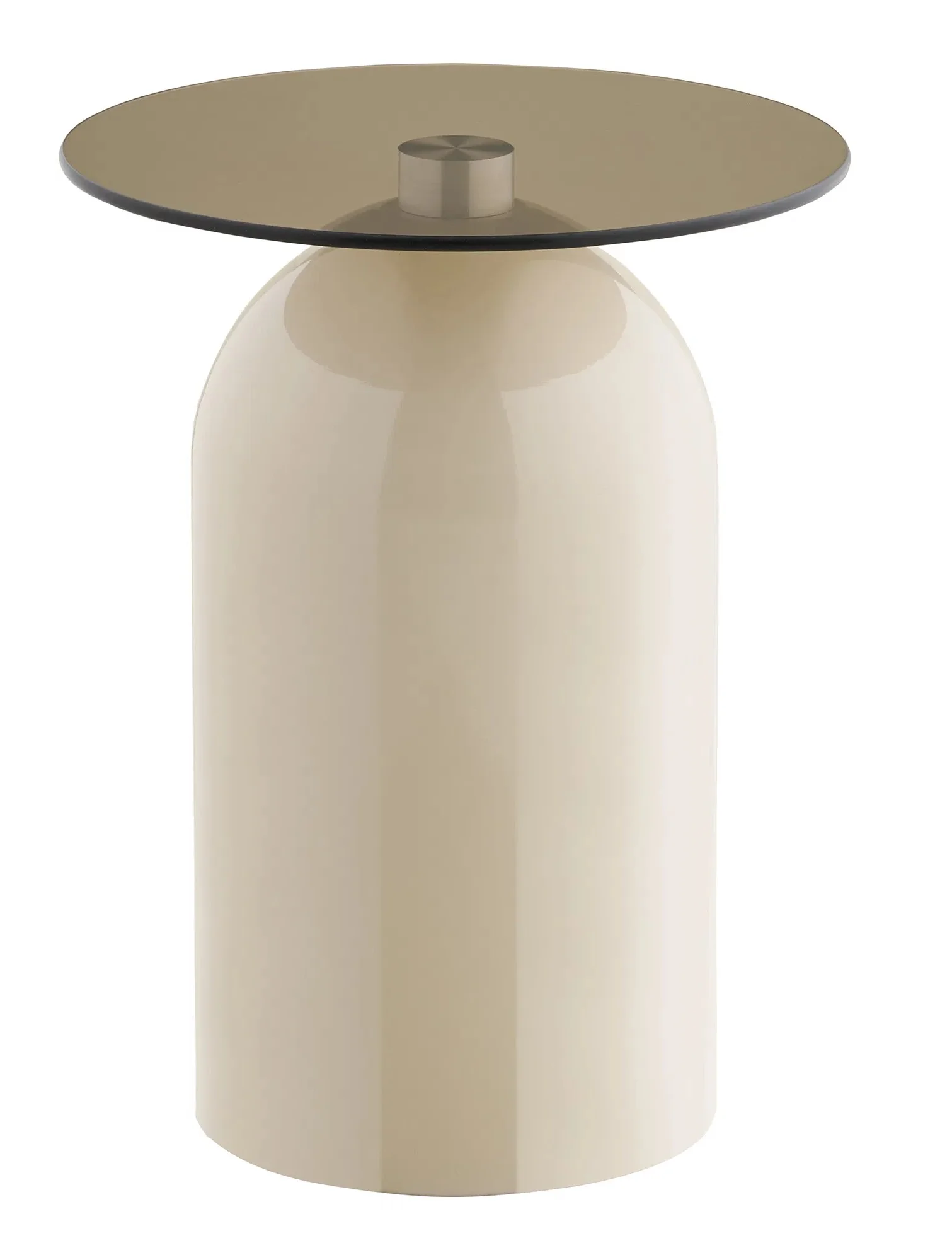 El sobre en vidrio templado ofrece resistencia y seguridad, además de una superficie fácil de limpiar y duradera para el uso diario. La estructura metálica lacada en tono beige aporta estabilidad y un contraste delicado con el vidrio gris, creando una estética equilibrada y atemporal que combina especialmente bien con sofás en tonos neutros, alfombras claras y maderas naturales.