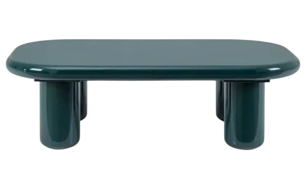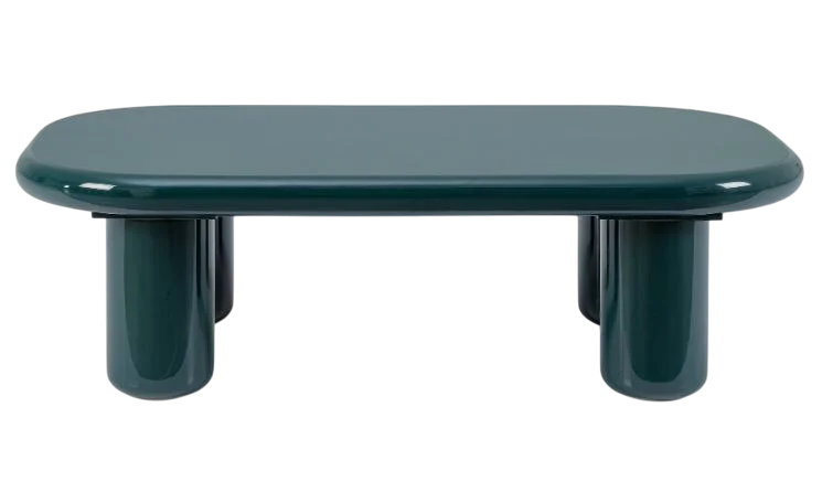 Esta mesa auxiliar presenta un diseño robusto y contemporáneo, con un tablero rectangular de esquinas redondeadas que le da un aspecto suave y muy estético. Está realizada en DM y acabada con pintura de poliuretano efecto brillo en un tono azul verdoso, lo que aporta una superficie lisa, pulida y muy luminosa. Sus patas cilíndricas, también voluminosas y con el mismo acabado brillante, se montan de forma independiente, generando una presencia escultórica y equilibrada. Con unas medidas de 120 cm de ancho, 70 cm de fondo y 36,5 cm de alto, es una pieza llamativa y funcional, perfecta para aportar un toque moderno y lleno de personalidad a un salón o zona de estar.