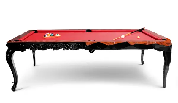 Mezcla de gracia y diseño contemporáneo, esta exuberante mesa de comedor tiene un estilo verdaderamente Boca do Lobo. Madera clásica tallada de líneas modernas con un lacado de alto brillo en negro y con un tablero de mosaico con barniz brillante.