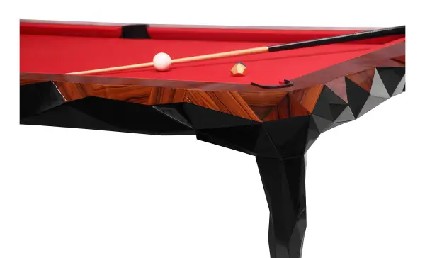 Hecha con madera y patas talladas en un estilo barroco - minimalista. La tapa está realizada con la técnica de la marquetería, con acabado en chapa natural de palisandro con barniz alto brillo (high gloss)