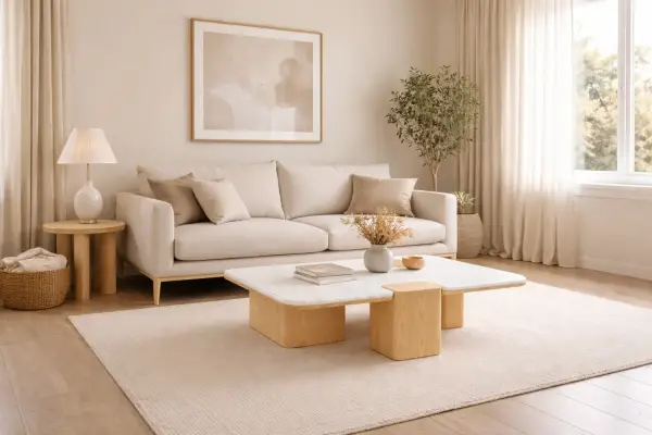 La estructura en chapa de madera de roble equilibra el conjunto con su calidez natural y robustez, creando un contraste elegante entre lo orgánico y lo moderno. Gracias a su diseño limpio y proporciones equilibradas, la mesa Apolo se adapta perfectamente al área del sofá, ofreciendo espacio práctico para bandejas, libros, adornos o bebidas sin sobrecargar el ambiente.