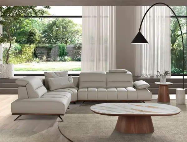 Eleva la estética de tu salón con esta mesa de centro ovalada medio punto de diseño moderno, perfecta para interiores contemporáneos. Su tapa de mármol porcelánico blanco con acabado brillante, decorada con vetas en tonos tierra, aporta luminosidad y elegancia natural al espacio. Las patas de madera chapada en nogal natural, de líneas originales y estilizadas, completan una pieza que destaca por su diseño equilibrado, sencillo y con personalidad propia. Ideal para quienes buscan un toque distintivo y funcional en la decoración del hogar.