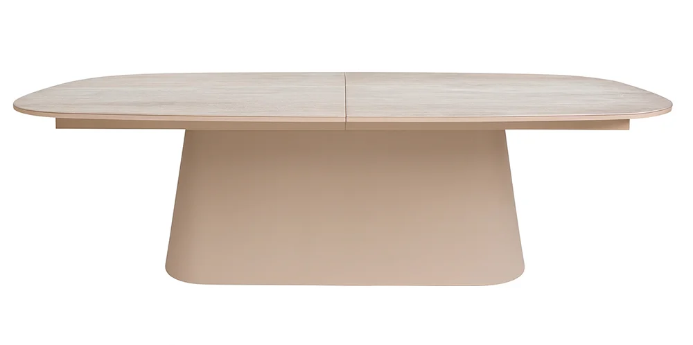 Mesa de comedor extensible con pie central en cemento que aporta estabilidad y un carácter contemporáneo único. Su tapa en porcelánico ofrece una superficie resistente, elegante y fácil de mantener. El diseño combina fuerza y sofisticación en una sola pieza. Ideal para comedores modernos que buscan estilo y funcionalidad.