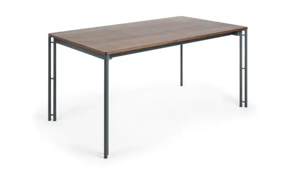 Mesa extensible con estructura en acero pintado por pulverización, sobre en chapa de nogal y extensión en DM lacado mate