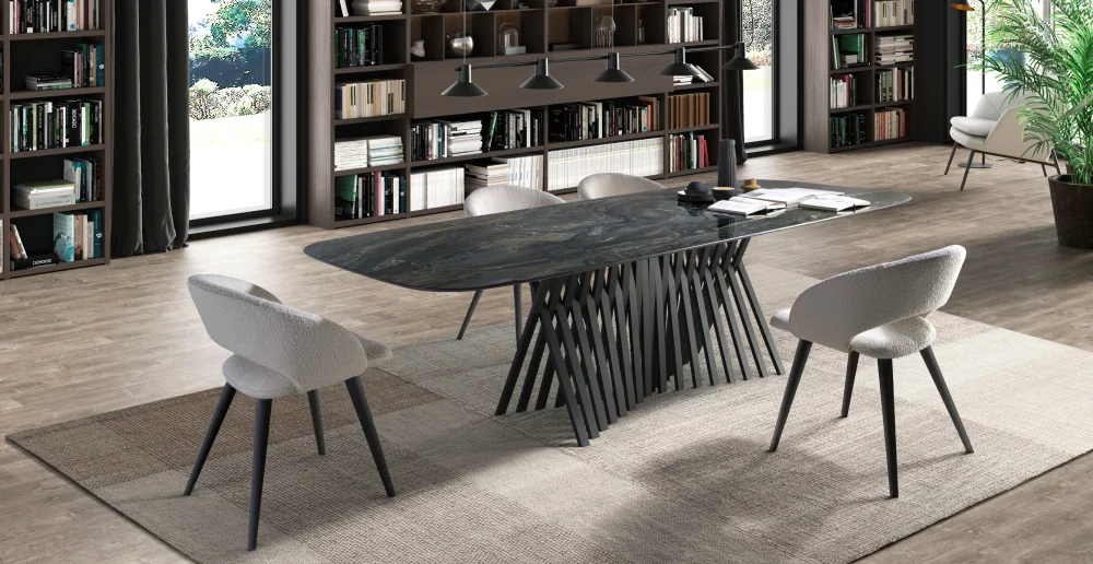 Mesa de comedor metal y porcelánico Elementa
