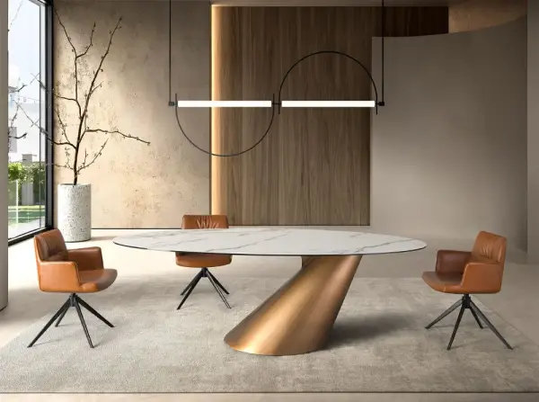 Mesa de comedor ovalada metal y porcelánico Ovaleia