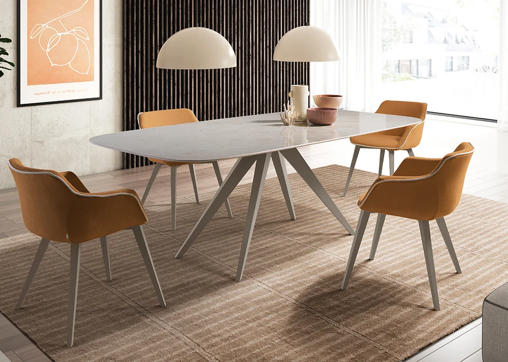 La mesa de comedor porcelánico August destaca por su diseño contemporáneo y elegante, ideal para espacios sofisticados. Su tapa en porcelánico ofrece alta resistencia al uso diario, al calor y a las manchas, garantizando durabilidad y fácil mantenimiento. La estructura, equilibrada y robusta, aporta estabilidad sin renunciar a la ligereza visual. Una pieza versátil que combina estética y funcionalidad para elevar cualquier comedor.