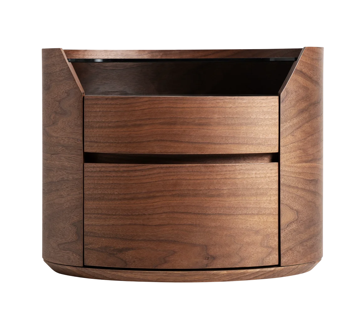 Mesa de noche Lecco nogal y tapa porcelánica y cristal