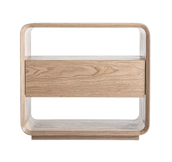 La mesa cuenta con un diseño abierto que permite un fácil acceso al espacio de almacenamiento, mientras que su cajón deslizante proporciona un lugar práctico donde guardar objetos personales, libros o cualquier otro elemento que desee tener a mano. El acabado liso y las líneas suaves hacen que la mesa sea fácil de mantener y contribuya a un ambiente acogedor en la habitación.