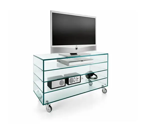 Mesa de televisión alta de diseño Como (cristal transparente)