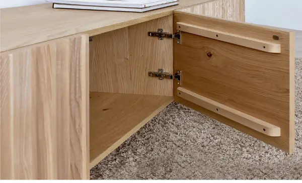 Este mueble minimalista con frente alistonado tiene relieve en zigzag, y su simpleza dota el espacio de nuestro salón de pureza con un toque moderno.