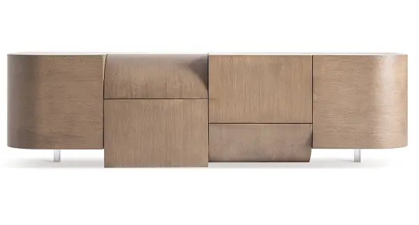 El Mueble TV Aksaray destaca por su reinterpretación refinada del estilo art déco, combinando líneas curvas y volúmenes suaves con la solidez y calidez del roble. Su acabado en tonos cálidos aporta una sensación de serenidad y equilibrio, haciendo que la pieza encaje con naturalidad en interiores elegantes y contemporáneos. El diseño integra puertas abatibles y compartimentos amplios que permiten organizar con discreción todo tipo de accesorios, mientras que su estructura ligeramente elevada y su composición de módulos curvos aportan dinamismo sin perder sobriedad. Con unas medidas de 190 cm de ancho, 50 cm de fondo y 53 cm de alto, es un mueble funcional y decorativo que suma distinción y personalidad a cualquier salón.
