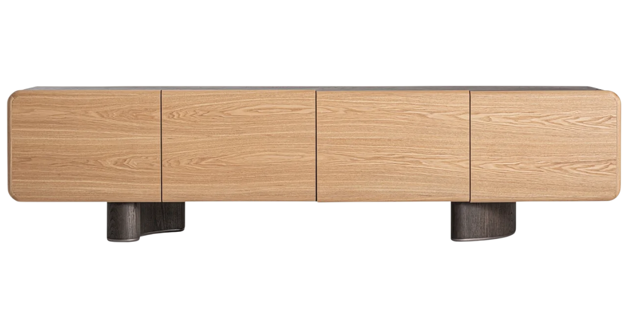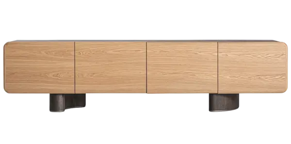 El mueble de TV Laneo combina un diseño contemporáneo con una estética cálida gracias a la mezcla de maderas en distintos tonos. Su estructura presenta líneas suaves y redondeadas, lo que aporta una presencia elegante y fluida. Las puertas en acabado natural contrastan con el cuerpo más oscuro, generando un equilibrio visual que destaca sin recargar el espacio. Cuenta con cuatro puertas abatibles que revelan compartimentos amplios y bien distribuidos, ideales para organizar dispositivos, accesorios o elementos del salón. Su construcción sólida y su estilo depurado lo convierten en una pieza funcional, moderna y con carácter. Con unas medidas de 220 cm de ancho, 45 cm de fondo y 55 cm de alto, es una opción perfecta para quienes buscan un mueble práctico y estéticamente equilibrado.