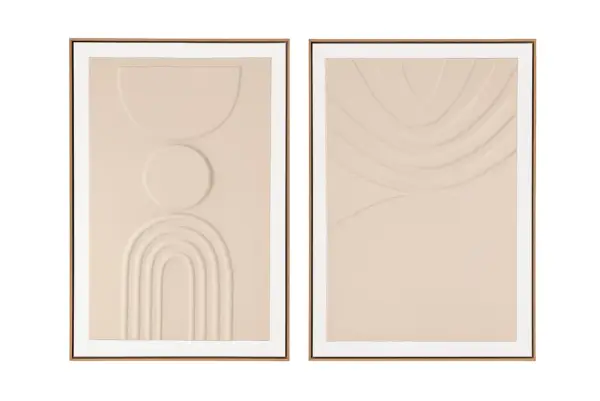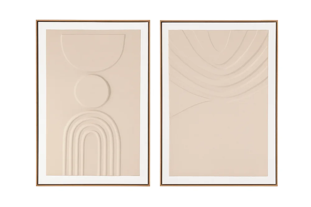 Set de 2 cuadros Caryt en tono crema con relieve y marco en madera. Diseño moderno y minimalista para salones, dormitorios o despachos.
