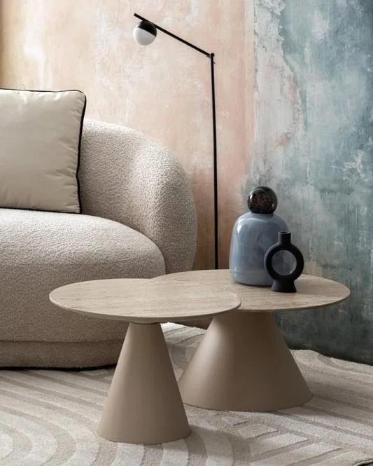 Set 2 mesas auxiliares efecto travertino y acero Hardy