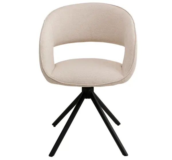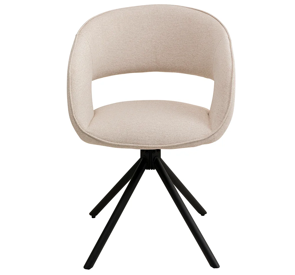 Con una estructura de líneas fluidas y patas acampanadas en acero negro, esta silla destaca por su estilo atemporal y su gran estabilidad. Incorpora una función giratoria de 180° que ofrece una libertad de movimiento óptima, perfecta para espacios de trabajo, comedores o salones modernos.