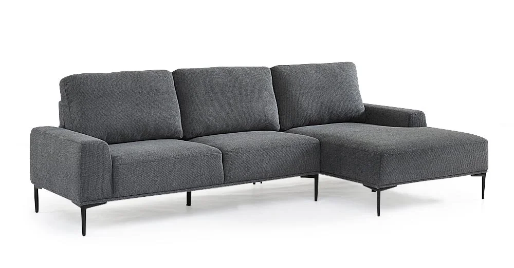 Este elegante sofá con chaise longue es la definición perfecta de comodidad y estilo minimalista. Con una estructura sólida de madera de eucalipto, este sofá promete durabilidad y resistencia. Las patas, fabricadas en acero barnizado a polvo epoxi, aportan un toque moderno y sofisticado, garantizando estabilidad y un estilo inconfundible.