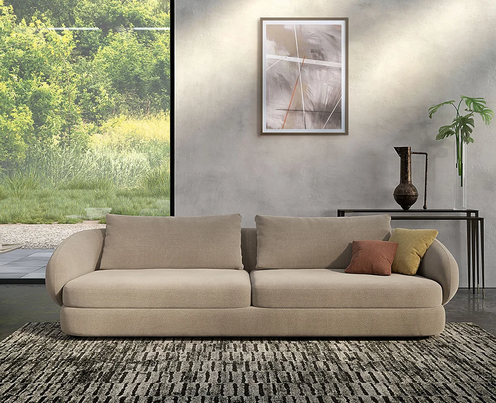 El apoyabrazos de Craig no es solo un elemento funcional: su forma envolvente da la sensación de un cálido abrazo, convirtiendo cada momento en una experiencia íntima y reconfortante. Es ideal para quienes buscan un sofá que combine diseño y calidez.