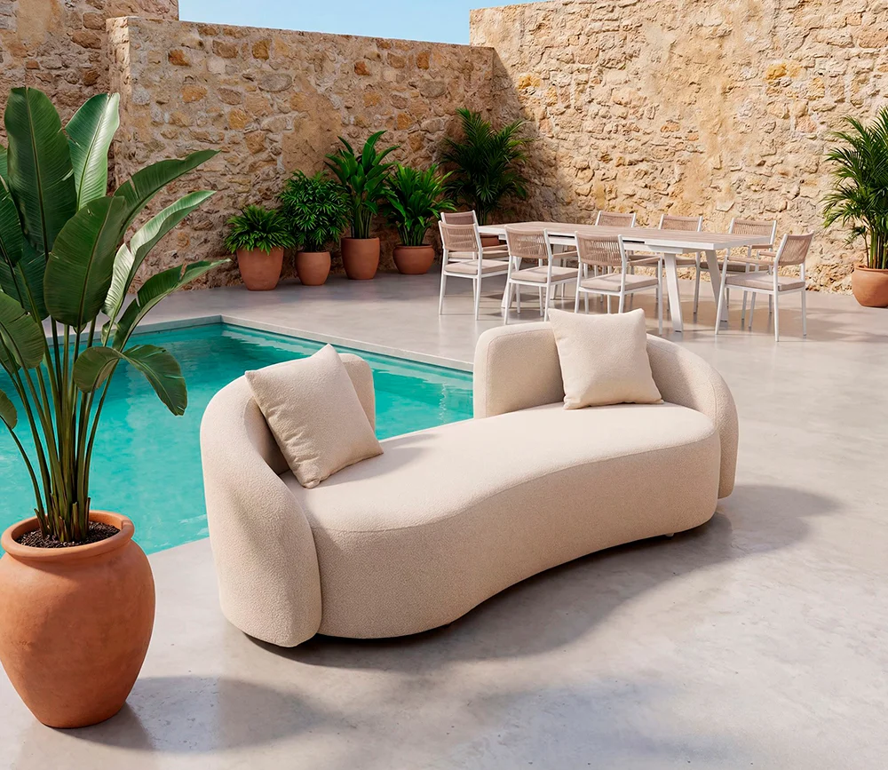 1. ¿El sofá Estepona es adecuado para exteriores durante todo el año?