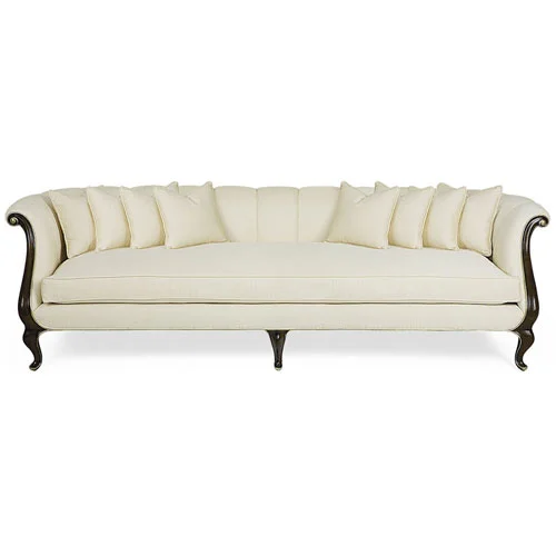 This overscaled central channeled sofa maintains its beauty with its soft lines and an abundance of throw pillows.