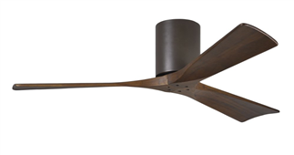 IRINA ventilador de techo, especial para techos bajos, carcasa del motor bronce oscuro, DC motor de bajo consumo con 3 palas de madera de color nogal-teca, 6 velocidades con marcha adelante y atrás, operado por mando a distancia (incluido), para interior y exterior (zonas húmedas).
