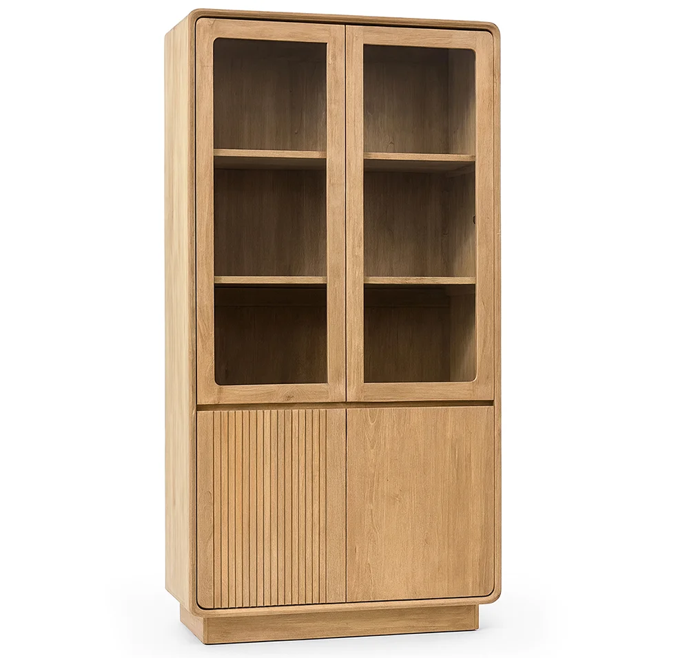 La vitrina Eyre de 4 puertas combina la elegancia natural de la madera de teka con un diseño sobrio y funcional. Su acabado artesanal realza las vetas únicas, aportando calidez a cualquier espacio. Ideal para exhibir objetos especiales con estilo y orden. Un mueble atemporal que destaca por su presencia.