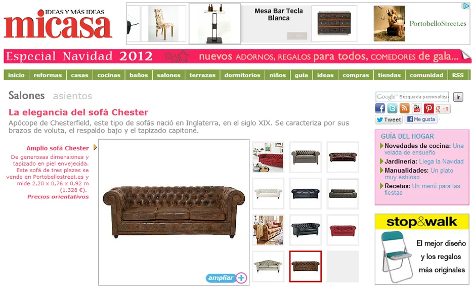 La elegancia del sofá Chester en la revista "micasa" Enero 2013